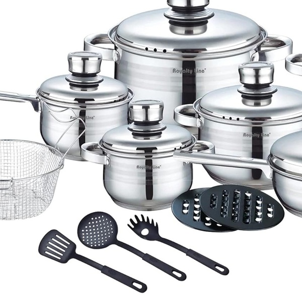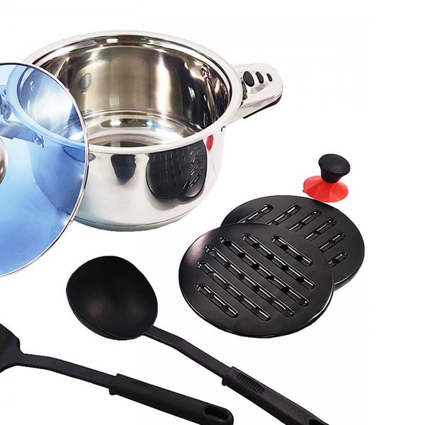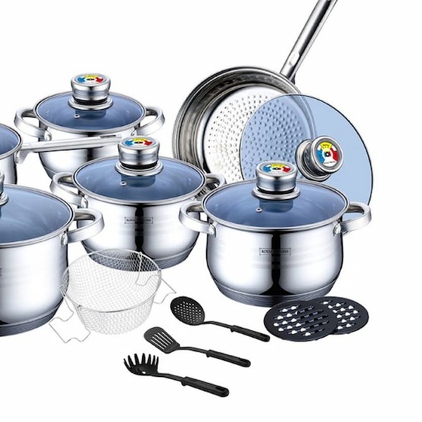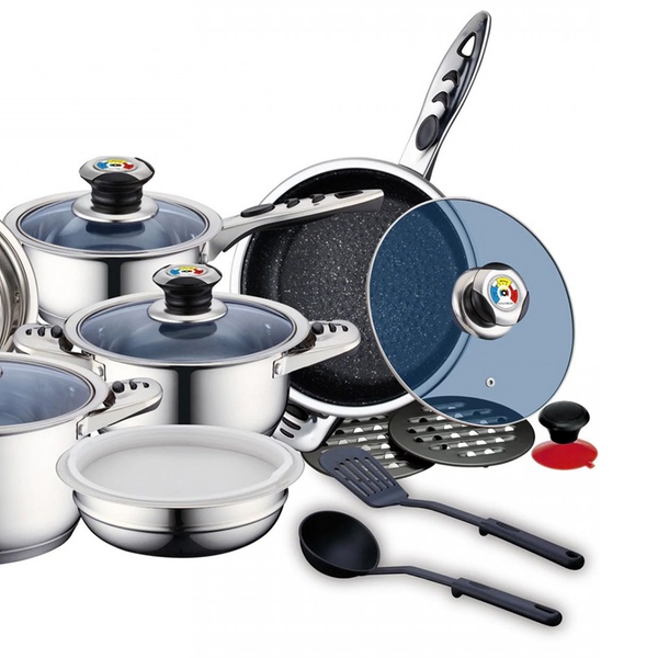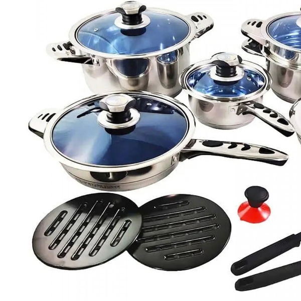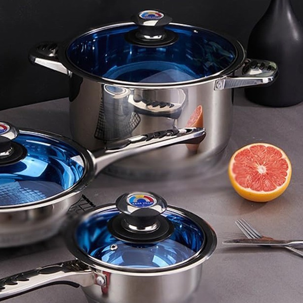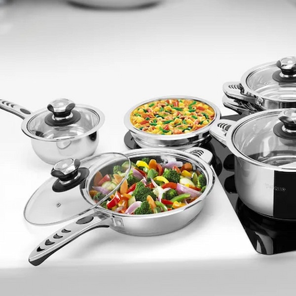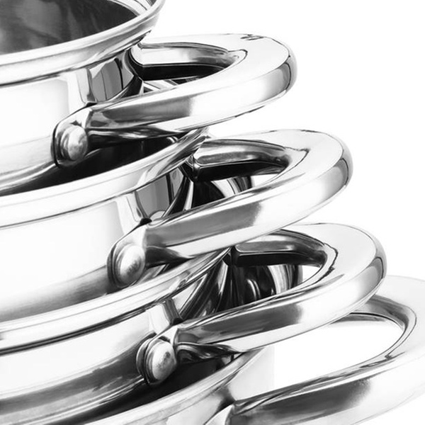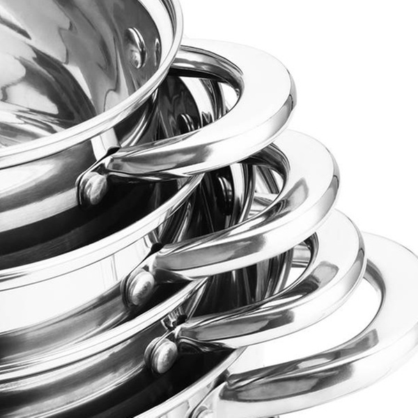 Deze roestvrijstalen pannenset onderscheidt zich door zijn compatibiliteit met alle soorten warmtebronnen