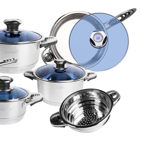 - ø 18 cm (2,9 ltr.) steelpan met blauwe glazen deksel