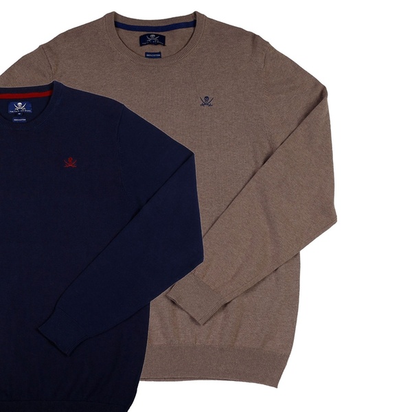 Stijlvolle jerseys in marineblauw en camel, perfect voor elke gelegenheid. Comfortabel katoen zorgt voor een heerlijke pasvorm