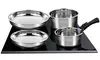 - 3 steelpannen van roestvrij staal: 16, 18 en 20 cm