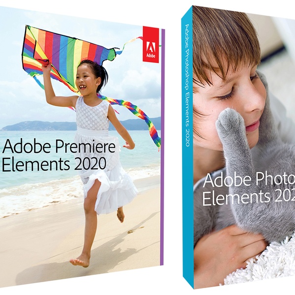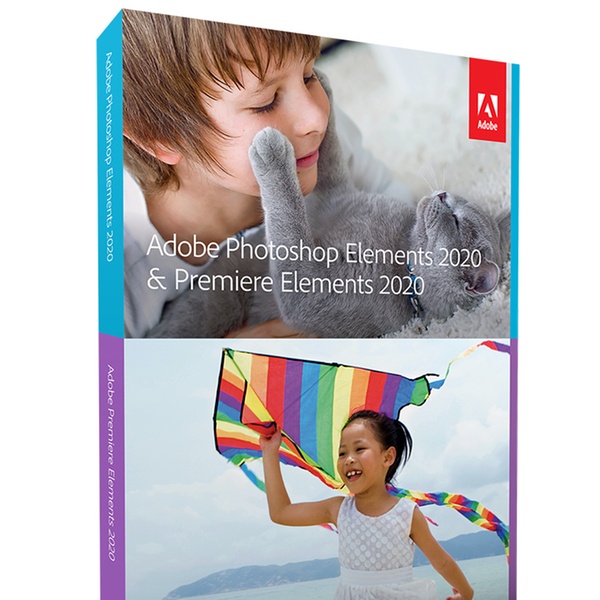 Een softwareselectie van Adobe, bestaande uit Photoshop Elements 2020 voor fotobewerking en Premiere Elements 2020 voor videobewerking.