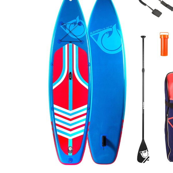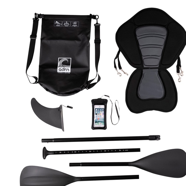 Ga op avontuur met het complete ADRENALIN-pakket, bestaande uit: opblaasbaar paddleboard, draagtas, peddel, riem, pomp, reparatieset en centrale vin. Kies het SUP-model dat het beste bij je past. Verschillende maten beschikbaar.