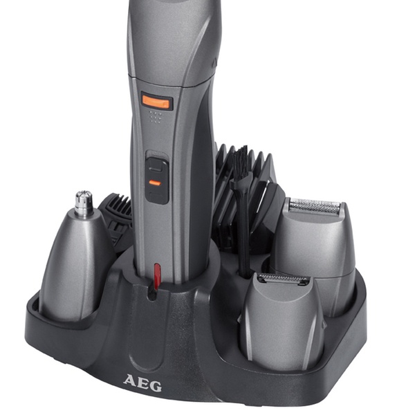 De AEG BHT 5640 4-in-1 trimmer is een alles-in-één apparaat: tondeuse, scheerapparaat, baard- neushaar en oorhaartrimmer.