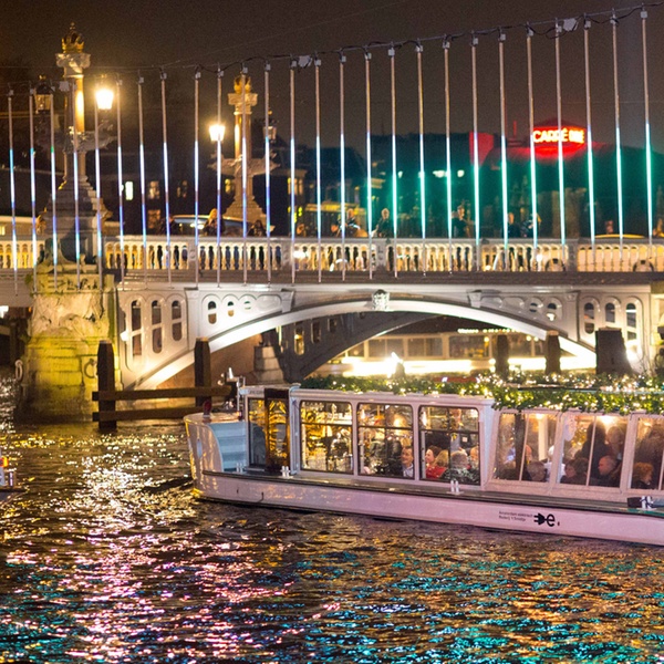 Beleef het Amsterdam Light Festival op een verwarmde rondvaartboot van Smidtje onder het genot van een 3-gangendiner en onbeperkt drankjes.