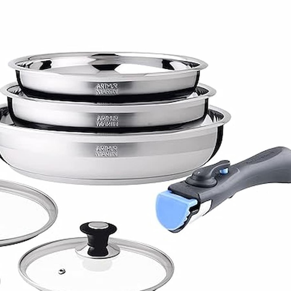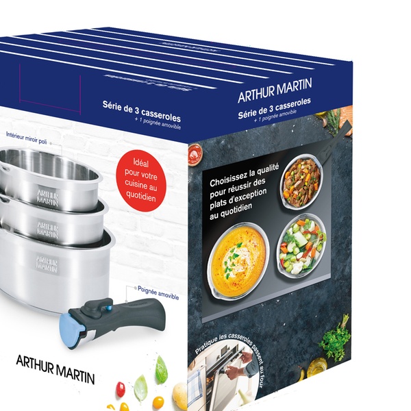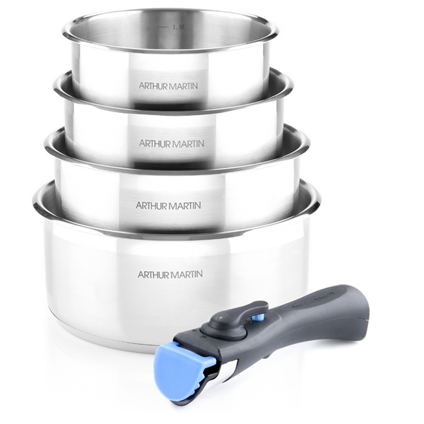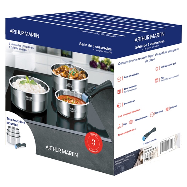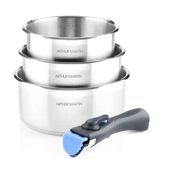 Set van 3 roestvrijstalen steelpannen met afneembare handgrepen Arthur Martin 5531