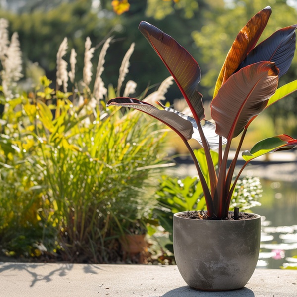 De Musa Ensete Maurelii is geen kamerplant, het is een statement. Met zijn royale rode bladeren en tropisch voorkomen brengt hij instant jungle vibes naar je tuin of woonkamer
