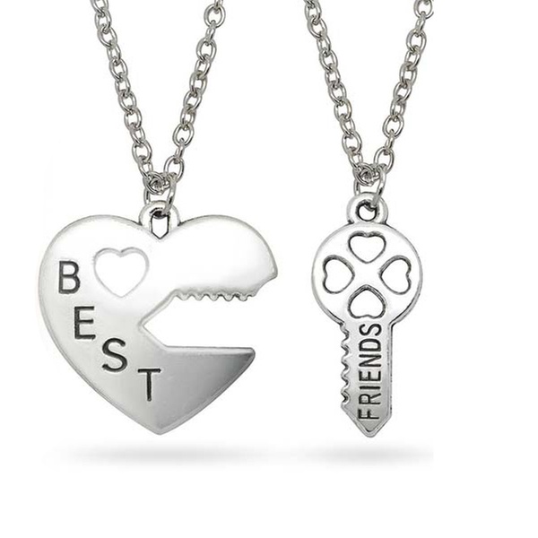 Deze ketting vertegenwoordigt een hart ene een sleutel en bevat de inscriptie “Best Friends”.