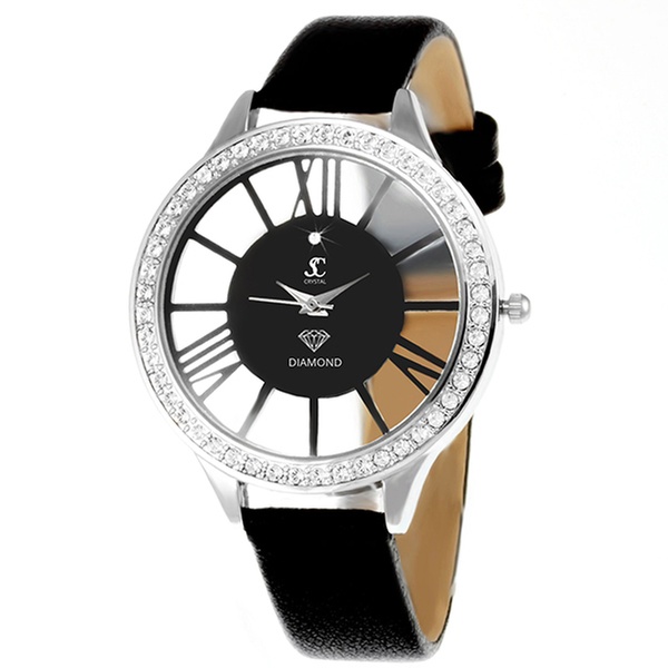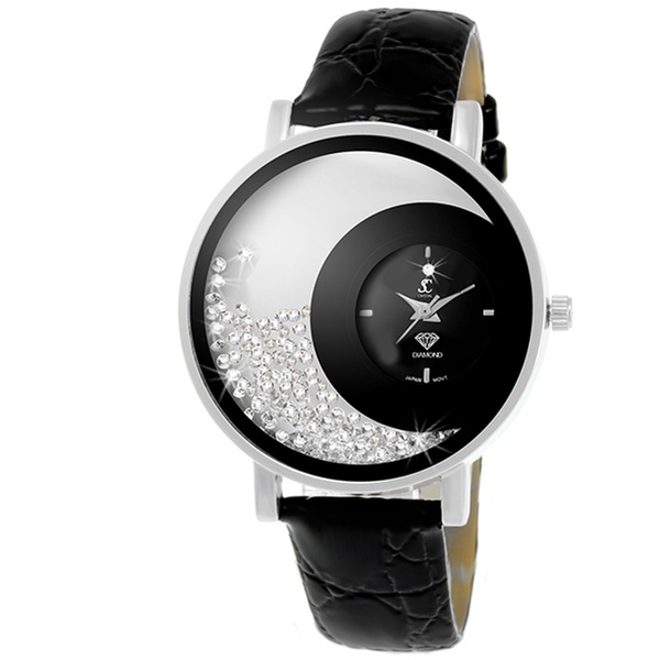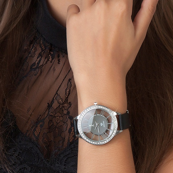 - Horloge versierd met een echte zwarte diamant en sprankelende kristallen