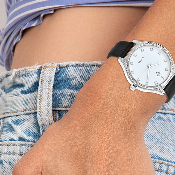 - Horloge versierd met een echte diamant en 48 sprankelende kristallen