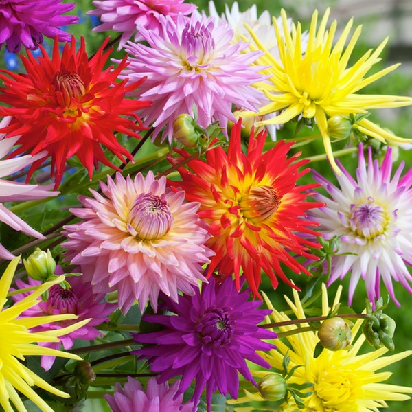 De plantafstand van de knollen van dahlia 'Cactus Mix' is 30-60 cm