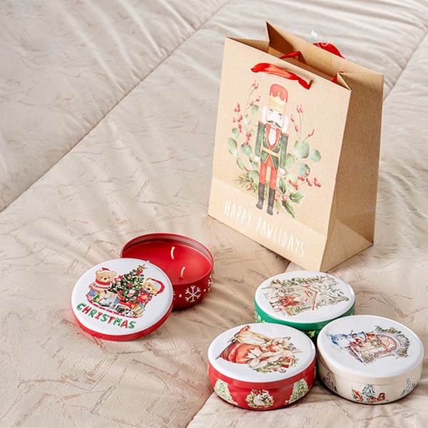 Cadeautip: vier geurige kaarsen in stijlvolle potten en verschillende wintergeuren, perfect voor sfeervolle avonden thuis