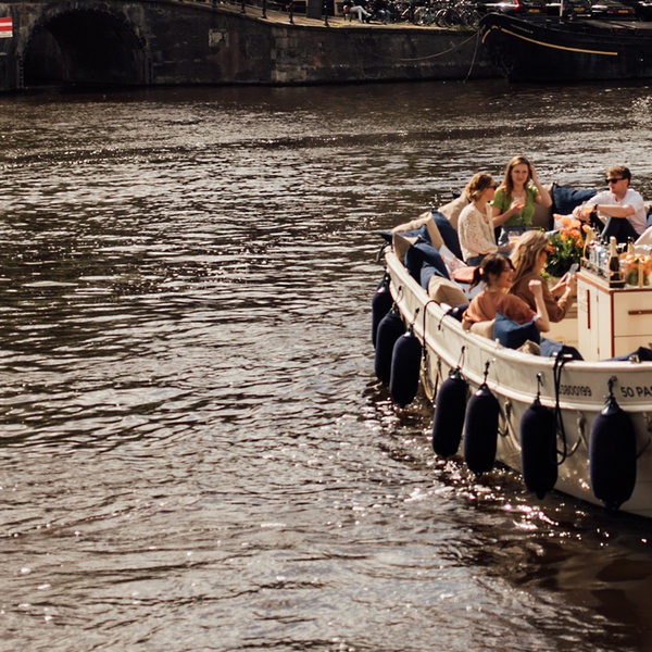 Het beste van Amsterdam: namelijk de open bar en de stad zélf! Die bar vaart namelijk geruisloos door de grachten, terwijl de vriendelijke gastvrouw jou je drankje verzorgt. Klassieke win-win toch?
