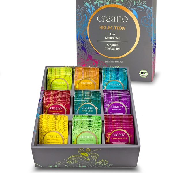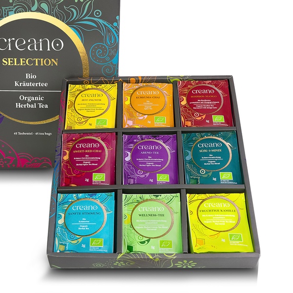 Geniet van 9 zorgvuldig geselecteerde biologische kruidentheeën, perfect voor elk moment van de dag of als een stijlvol cadeau