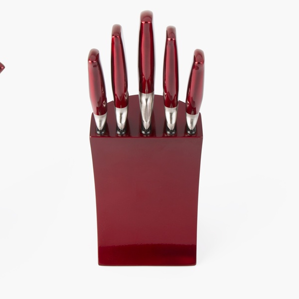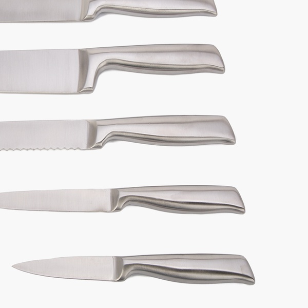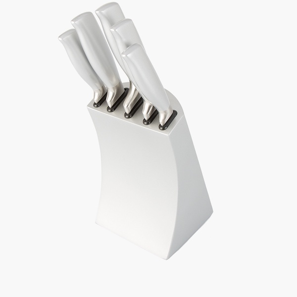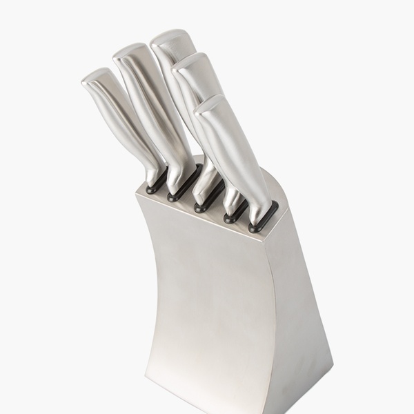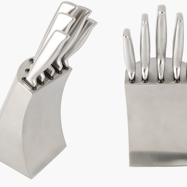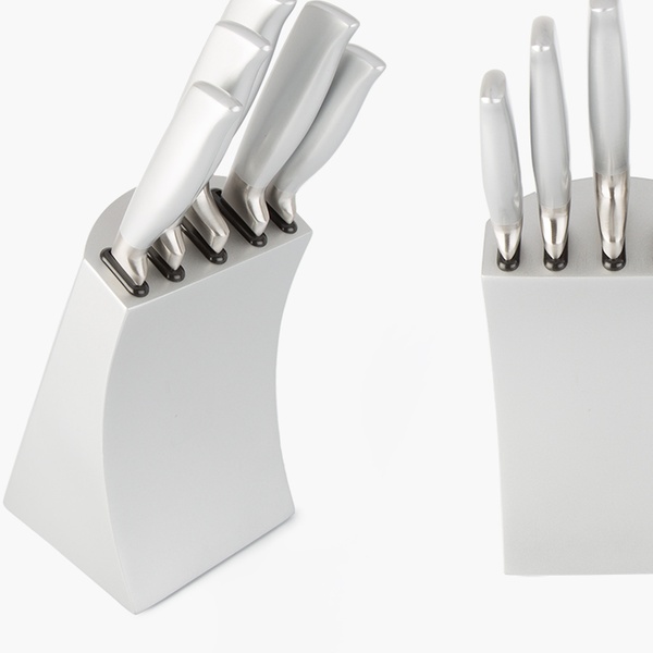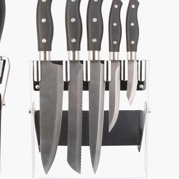 Deze messen zijn voorzien van duurzame roestvrijstalen bladen en zijn voorzien van een metalen blok of een elegante acrylstandaard.