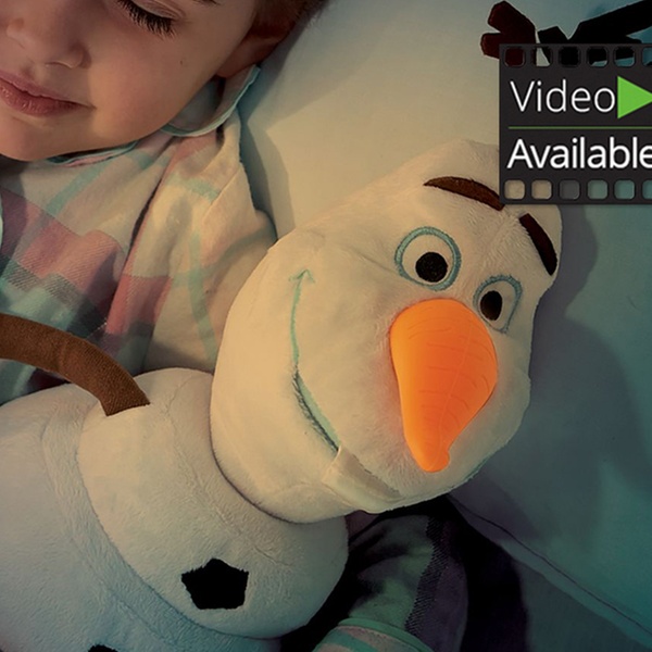 Deze knuffelige pluche Olaf zorgt voor een vriendelijk gezicht met troostende gloed voor het slapen gaan