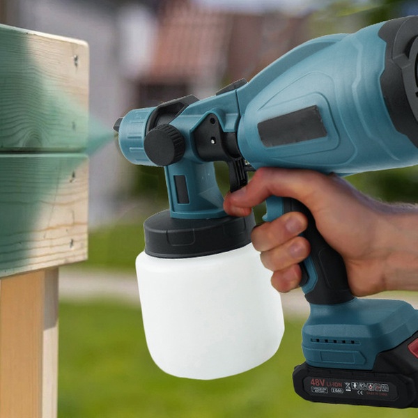 Met een krachtige dubbele 48 V batterij biedt deze draadloze verfspuit langdurige vrijheid voor elk project