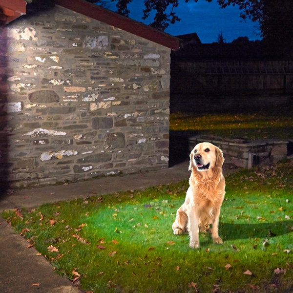 Deze LED-buitenlamp verwelkomt bezoekers of waarschuwt in het geval van indringers op de oprit door een bewegingsbereik van 10 meter.