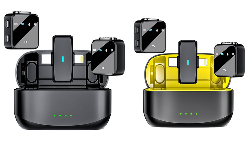 Compacte draadloze microfoon met oplaadcase en 360° omnidirectionele opname, ideaal voor interviews, vlogs en contentcreatie onderweg