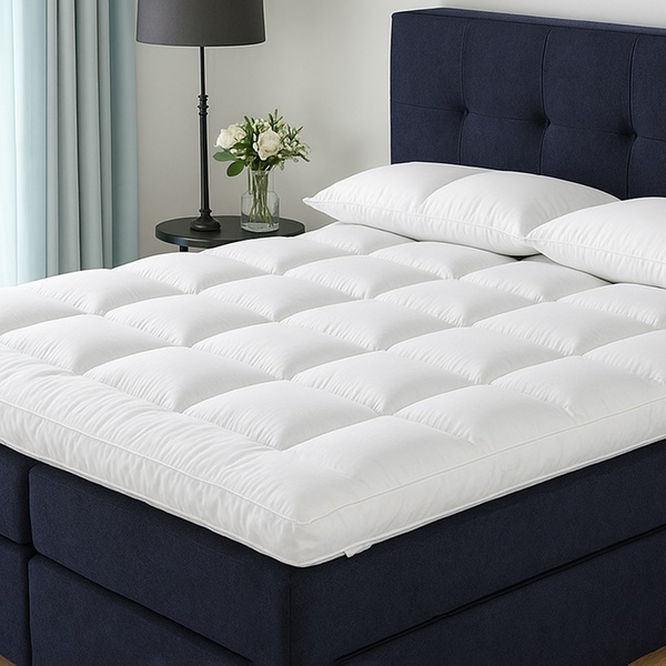 Deze zomermatrasstopper combineert twee technologieën - microvezel en thermogevoelig traagschuim - voor optimaal comfort en ondersteuning