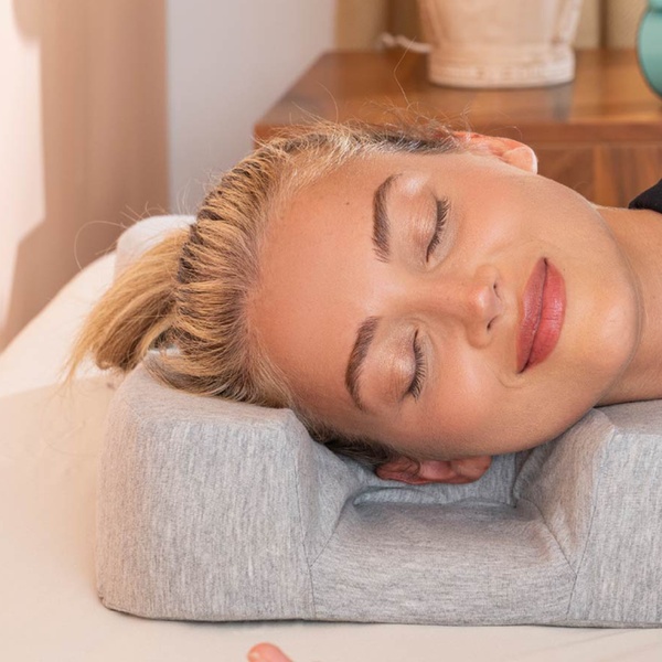Dit kussen is ontworpen voor een zo goed mogelijke uitlijning van de wervelkolom en gelijkmatige ondersteuning van het hoofd