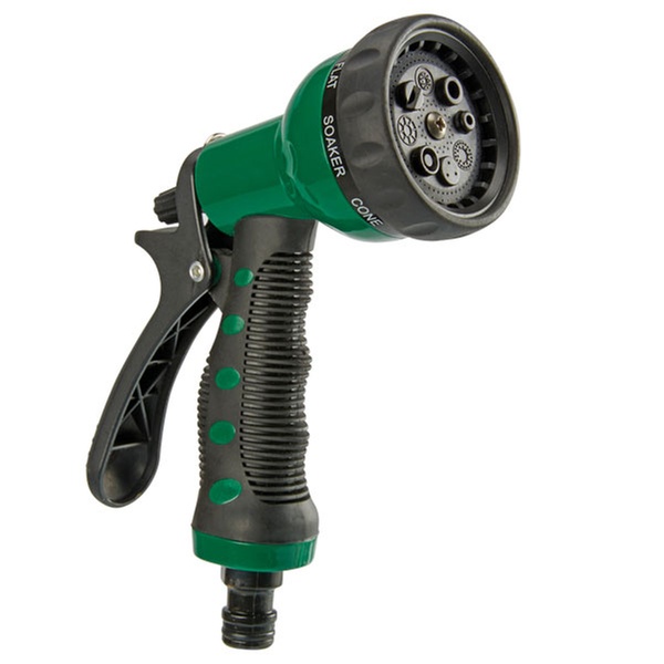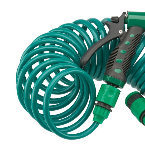 Deze flexibele, lichtgewicht tuinslang is tijdens gebruik uit te rekken en heeft een in vier standen verstelbare spuitkop.