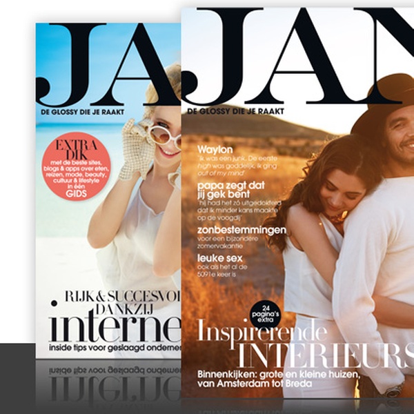 JAN Magazine ligt al meer dan 9 jaar in de schappen. In JAN vind je elke maand sprankelende modeseries, het grote interview met een bekende Nederlander, aangrijpende levensverhalen, praktische beautytips en de mooiste reisbestemmingen. Ook besteed JAN aandacht aan stijlvolle interieurs, eten, liefde en psychologie.