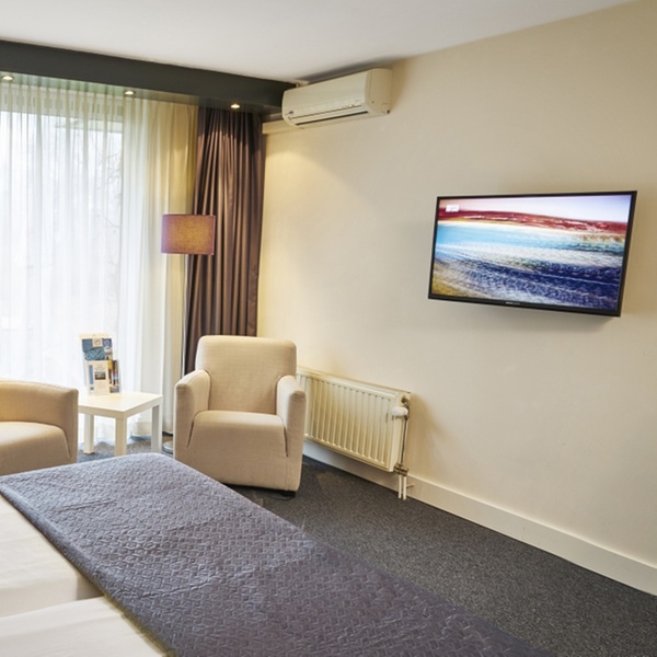 - Huisdieren zijn toegestaan voor € 12,50 per dag/dier in het hotel, maar niet in het wellnesscentrum