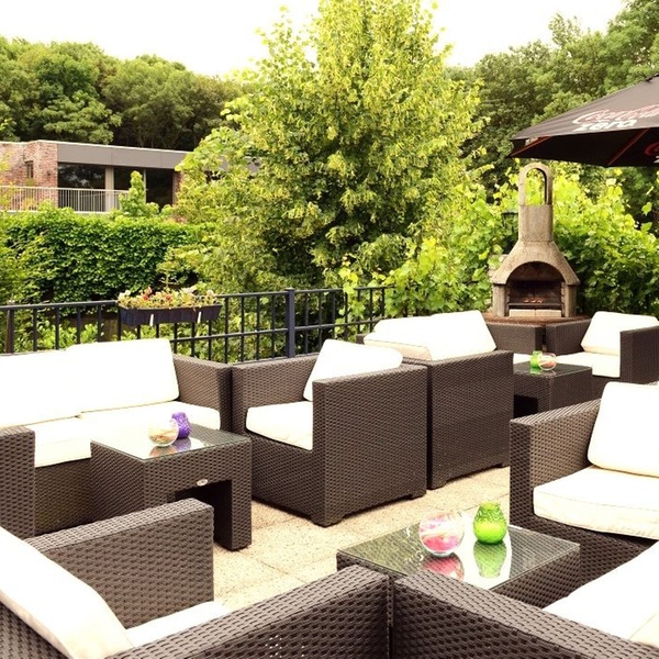 | Terras uitkijkend op onze vijver en op het Limbrichterbos | |