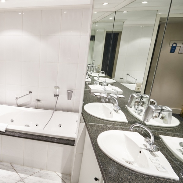 | Badkamer met bad of douche | Badkamer met een apart bad en een aparte douche |