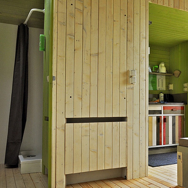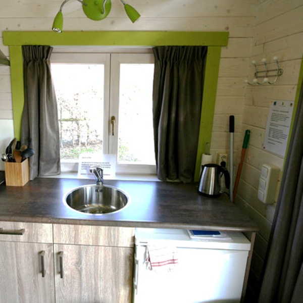 Trek-in is een duurzame accommodatie en heeft zelfs een aantal jaren geleden op de Dutch Design Week gestaan. Nu is deze op het landgoed geplaatst. In jouw hut is alles aanwezig van een complete keuken (elektrisch fornuis, koelkast en waterkoker) tot een badkamer met toilet en douche. Het uitzicht is ook prachtig vanuit deze op een tent gebaseerde hut want je loopt zo het bos in.