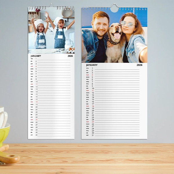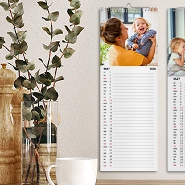 Elke maand een glimlach! Stel je voor: je bladert door de dagen en wordt telkens begroet door een dierbare herinnering. Van zonnige vakantiekiekjes tot knusse familiemomenten, jouw kalender brengt het hele jaar door een warm gevoel. Geef je favoriete foto's een ereplek en geniet elke dag van jouw mooiste momenten!