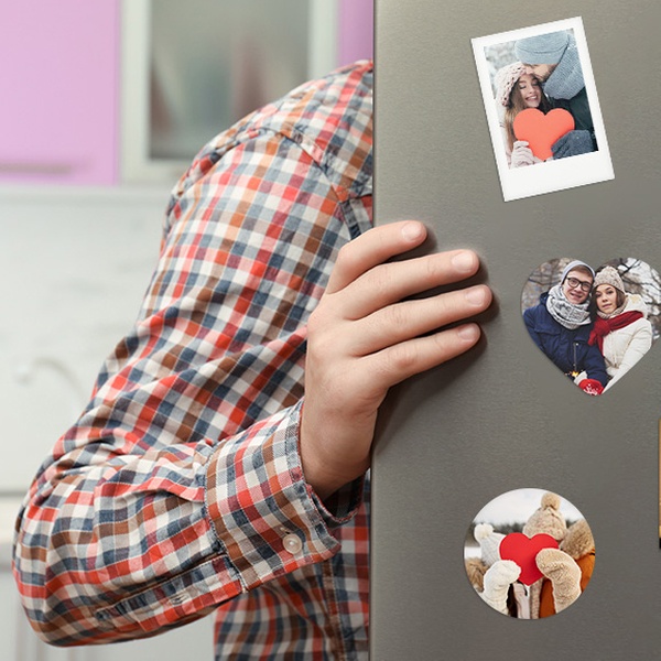 Creëer gepersonaliseerde fotomagneten in 4 verschillende vormen en maak elke koelkast tot een kunstwerk met deze stevige en vrolijke magneten