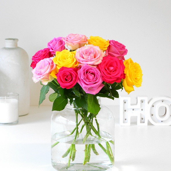 Deze prachtige bos gemengde rozen (12 stelen) is een originele verrassing voor elke gelegenheid; om iets te vieren of gewoon zomaar. Met dit fleurige bloemengeschenk tover je gegarandeerd een glimlach op het gezicht van de ontvanger.