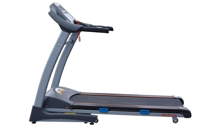 De Sole F-84 loopband heeft 3,5 PK, waardoor hij wel 18 km/h kan halen. Hij beschikt over een geacanceerd schokabsorberend loopvlaksysteem, waardoor je tussenwervelschijven, gewrichten en knieën 35% minder belast worden tijdens het hardlopen. Je hebt de keuze uit 10 vooringestelde programma’s. Met de knoppen in de armsteun kan je de snelheid en hellingshoek snel en eenvoudig instellen. Bovendien heeft-ie een groot verlicht LCD-scherm met 5 vensters waarop snelheid, hellingshoek, tijd, totaal afgelegde afstand, calorieën en hartslag worden weergegeven. Je harslag wordt gemeten met de ingebouwde hartslagmeter of je maakt gebruik van een borstband die je draadloos met de loopband verbindt. Geniet ten slotte van een lekker muziekje tijdens het lopen, want het apparaat heeft een ingebouwd audiosysteem met speakers, waarop je een MP3-speler, smartphone of ander muziekapparaat aansluit. Verder is de band makkelijk te verrijden en in te klappen.