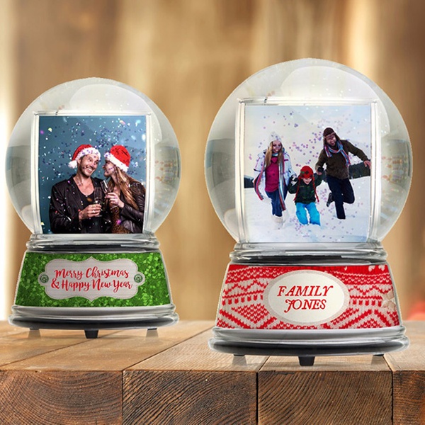 Maak een unieke sneeuwbol met twee foto’s aan beide zijden van de bol.