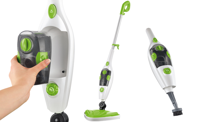 Deze Cleanmaxx Steam Mop 8-in-1 set bestaat uit een vloerstomer en een tapijtstomer, een handstomer, een glazenreiniger en een droger in één. Hij is binnen 30 seconden te gebruiken en heeft een watertank van 350 ml die elk moment kan worden bijgevuld. Er worden bij het schoonmaken geen chemicaliën gebruikt en geeft 20 minuten stoom achter elkaar.
