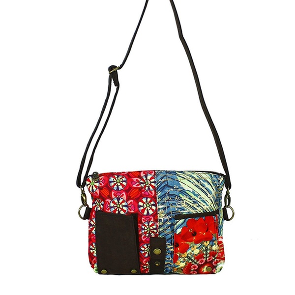 - Materiaal: imitatieleer (polyvinyl chloride), canvas katoen met print en borduurwerk