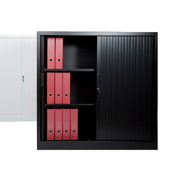 - € 299,99 voor Roldeurkast laag zwart van 118 (h) x 120 (b) x 43 (d) cm (38% korting)