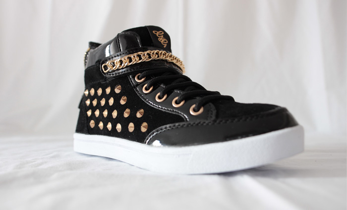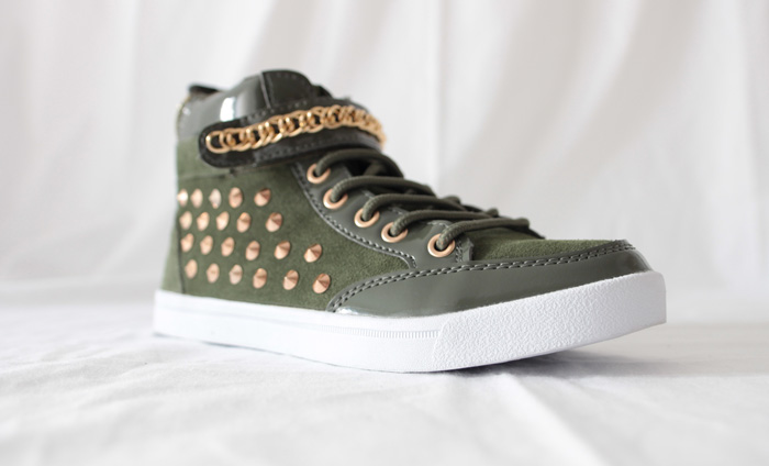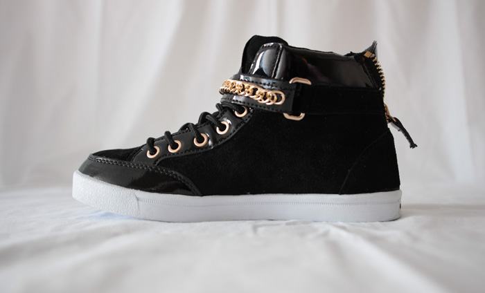 Dit paar sneakers doet een outfit opleven, dankzij z'n stoere rits bij de hiel, studs aan de zijkant en band rond de enkel.