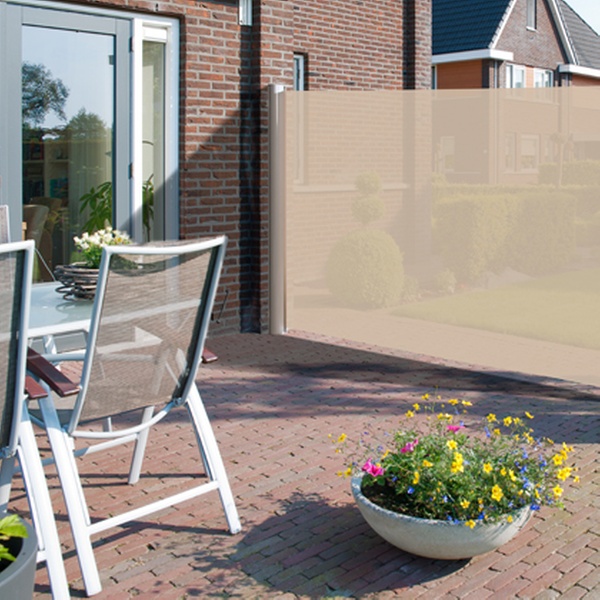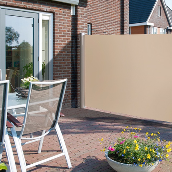 Met dit uitrolbare scherm van Brulo zit je altijd comfortabel uit de wind. En uit het zicht van nieuwsgierige buren. De onopvallende aluminium cassette monteer je aan de muur en de vloerbevestiging (voet) voor het eindpunt monteer je op gewenste afstand op een betegeld terras. Dankzij het rolsysteem is het windscherm snel en makkelijk uit te trekken en weer op te bergen. Met een hoogte van 1,80 meter en een maximale breedte van 3 meter maak je van je achtertuin een windvrije lounge area. Geen terras? Geen probleem. Met de vrijstaande mast is het scherm geschikt voor bijvoorbeeld het strand of het park.