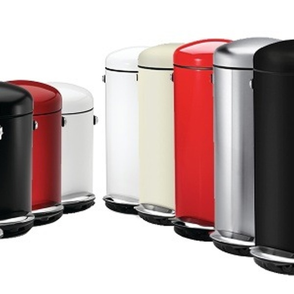 Met een koepelvormige deksel, verkrijgbaar in verschillende kleuren, zijn deze prullenbakken erg geschikt voor de badkamer of keuken.