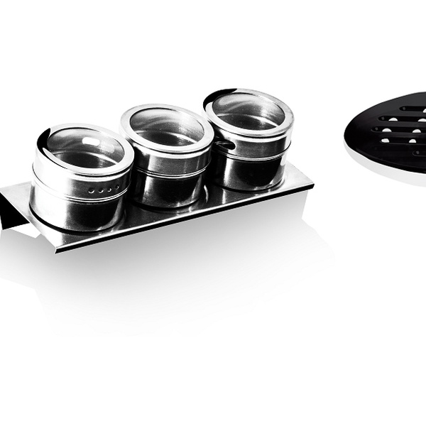 - Drie kruidenpotjes op een magnetische houder