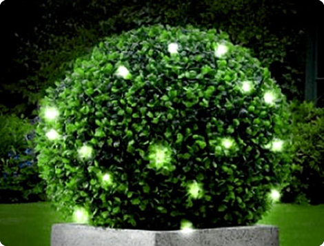 - € 24,99 voor een buxusbol van 40 cm met 48 led-lampjes in lijn. (waarde € 54,95)