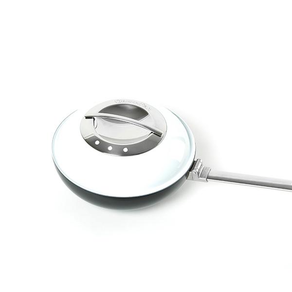 - Multifunctionele wonderwok met een opvouwbaar handvat, wordt geleverd met een stoomdeksel en stoomrek binnenin