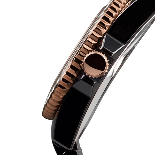 - Geleverd met zelfontwikkeld automatisch uurwerk, saffierglas en een doorzichtig achterdeksel