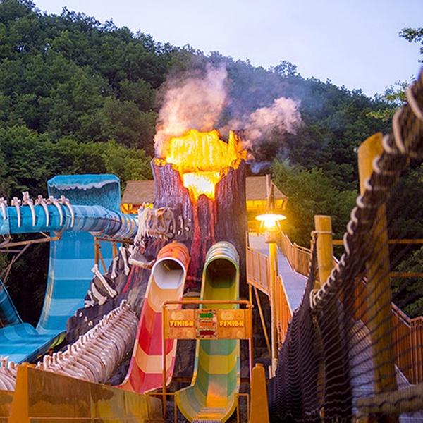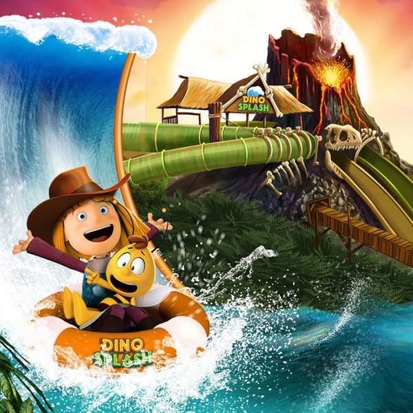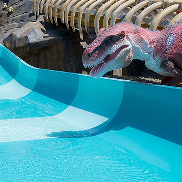 Maar liefst drie keer neem je een sensationele duik in het water in een reusachtige vulkaan langs machtige dinosaurussen. Eén glijbaan heeft de vorm van een golf, de twee andere zijn voorzien van speciale licht- en geluidseffecten en stuwen je recht een rots in. Waterkicks bij de vleet!
