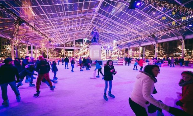 - De schaatsbaan bevindt zich te midden van de jaarlijkse kerstmarkt