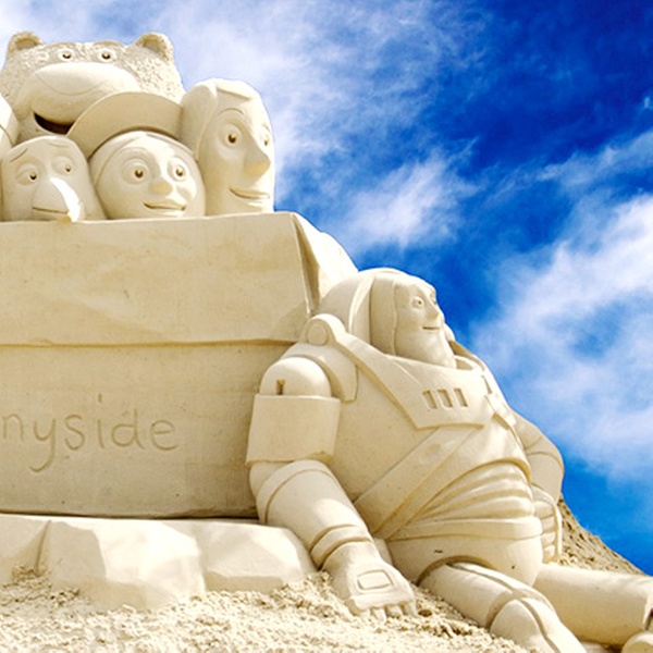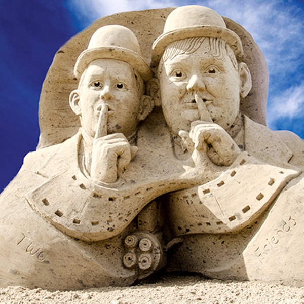 Maak een tocht door Hollywood met zandsculpturen van bekende filmsterren, cartoons, de nieuwste animatiefilms en de “golden oldies”.
