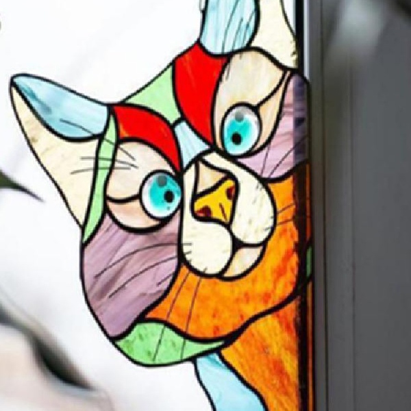 Deze raamhanger heeft een glas in lood design en komt in verschillende kleuren katten, om je woonkamer op te fleuren