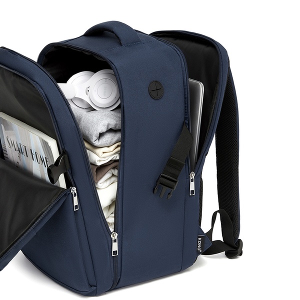 • Middelste compartiment opent als een koffer, met mesh- en steekvakken, pennenhouder en powerbankvak